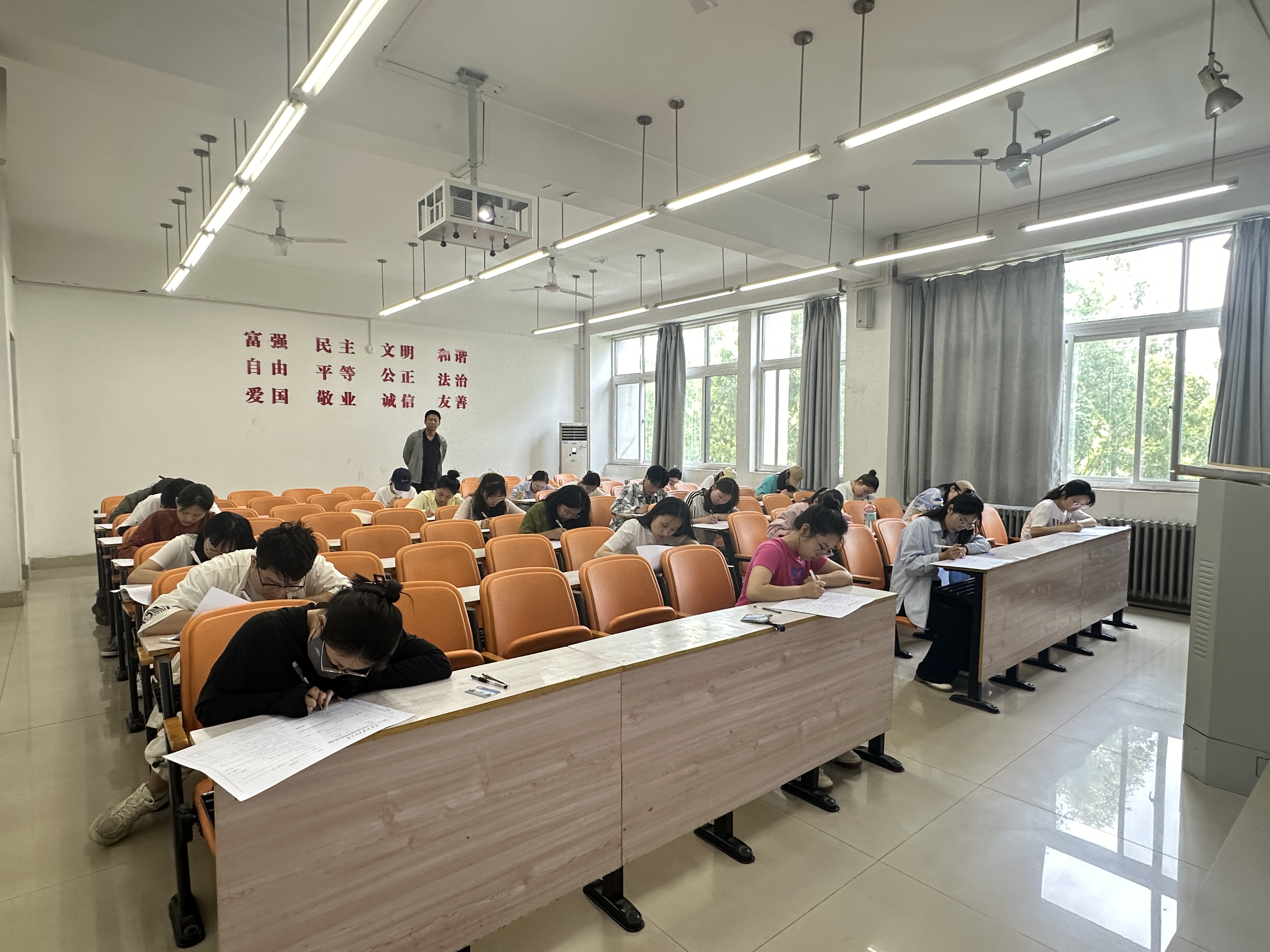 此次考试采用闭卷的形式,重点考察党员发展对象对于二十大报告、《中国共产党章程》以及党纪学习教育等基本理论知识的掌握情况。开考前,监考老师强调了考试纪律和注意事项,要求考生严守纪律、诚信考试,全程自觉、独立完成答题。考试期间,监考教师认真巡视考场,确保考试公平公正,考生态度严肃认真,沉着冷静答题,考试全程秩序井然,充分展现了良好的考试风气。