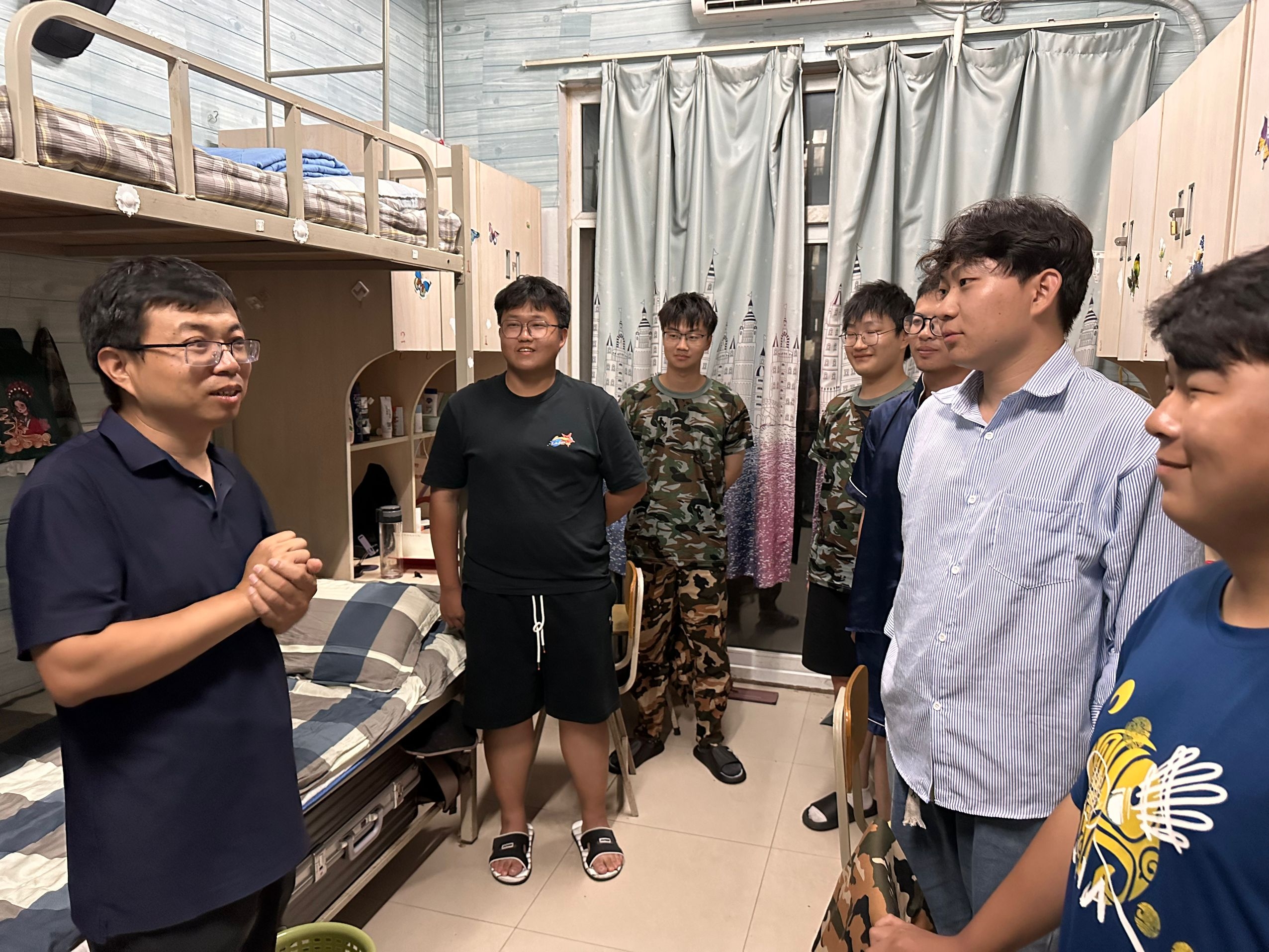 炎夏已过,初秋将至。为进一步落实立德树人根本任务,全面了解我院2024级新生入学后适应情况,帮助全体新生更好更快地融入新集体与新环境,2024年9月7日晚,williamhill英国副院长郝秀琴、梁长来和教师代表走进新生宿舍,对2024级新生进行走访慰问,询问关于军训和大学适应情况,与同学们“拉家常、聊近况、话学业”,送上来自williamhill英国的第一份温暖和关怀。