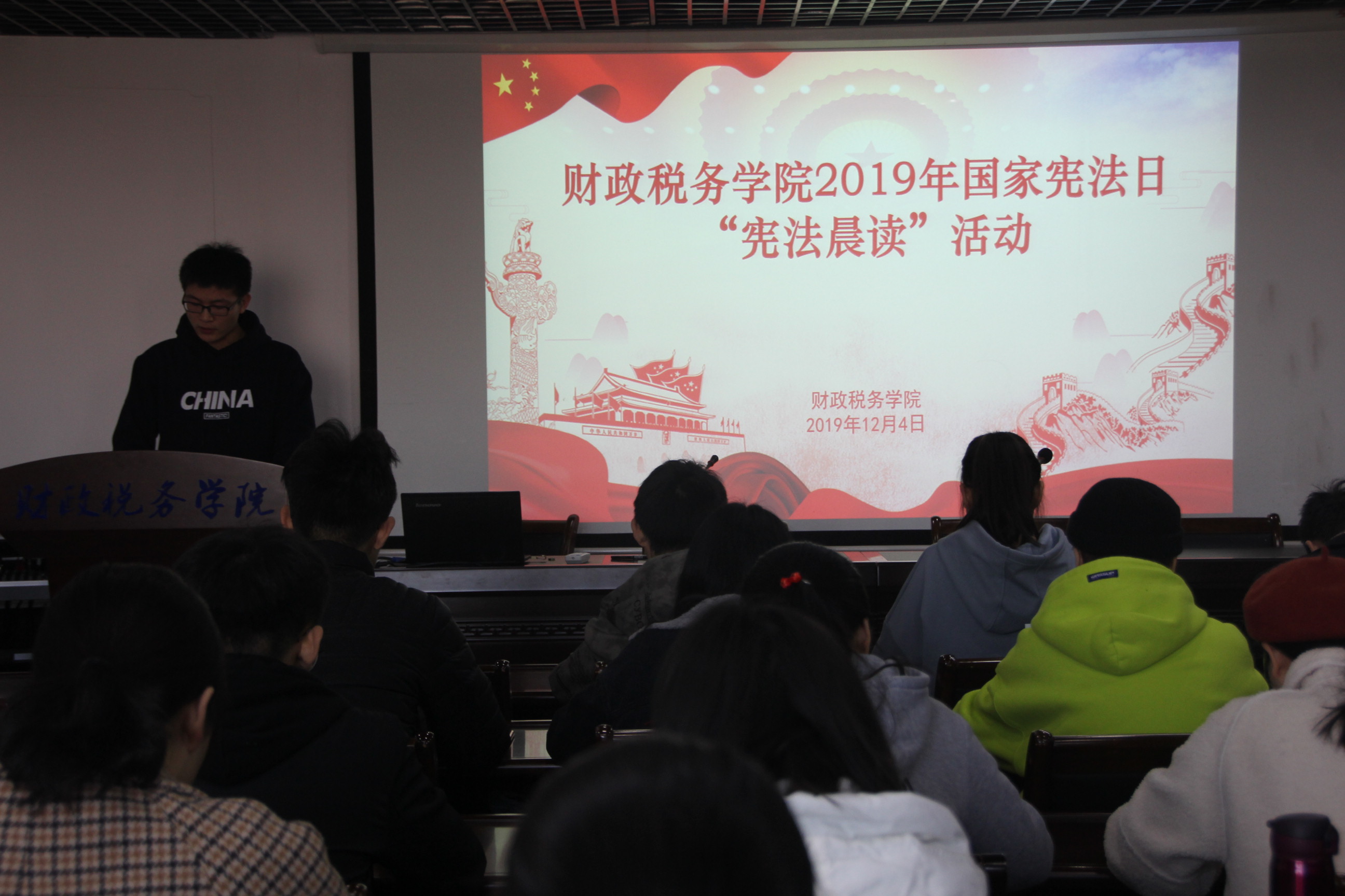 12月4日上午8:55,williamhill英国于教学科研楼555会议室举办了国家宪法日“宪法晨读”活动,2018级、2019级同学参与活动。