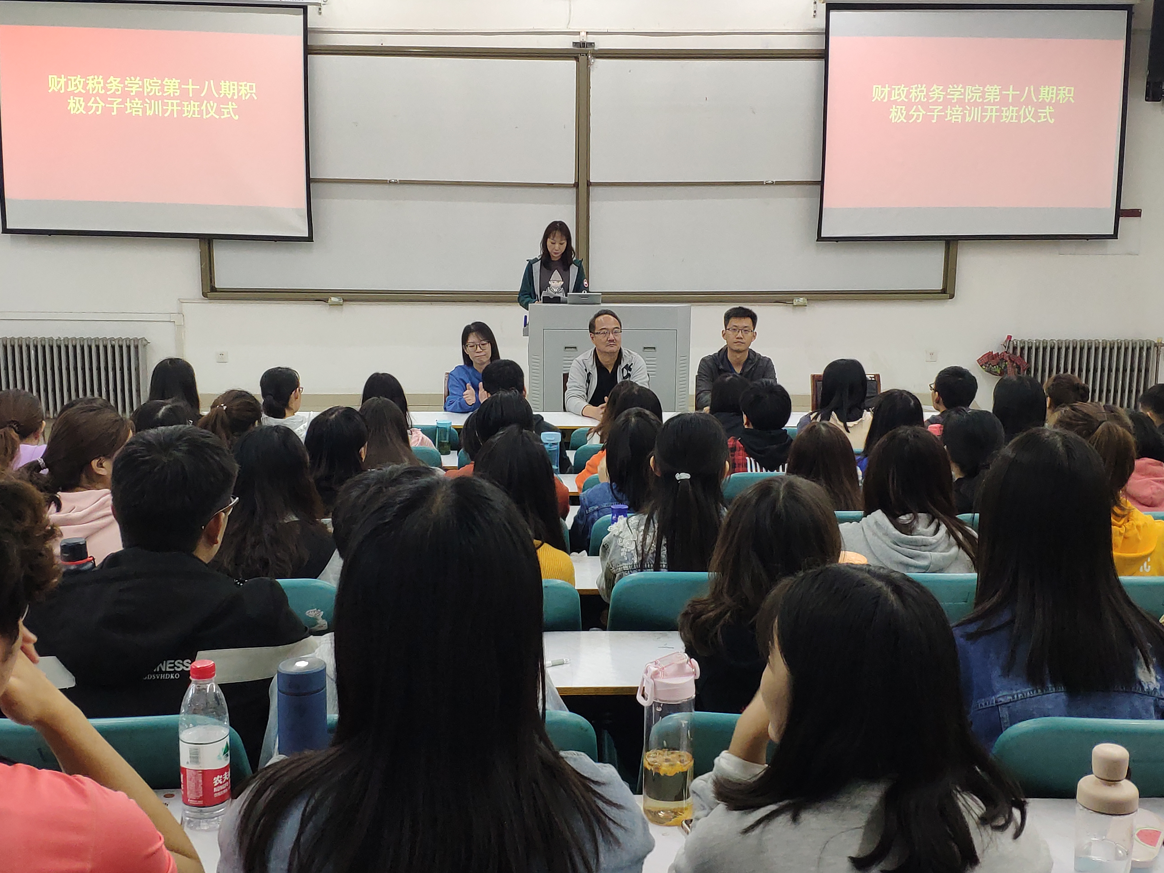 首先,团委书记张岚岚从培训流程、考试形式、具体要求等方面对本次培训进行了介绍,强调了本次培训的重要性和考试的严格性,要求积极分子提高重视程度,认真接受培训。随后,院党委书记徐郑生就开班仪式发表致辞,他以一个题目开头,要求在场的积极分子认真思考自己入党是为了什么、能做到什么,他强调,积极分子要以党员标准严格要求自己,端正入党动机,认真学习培训教材,争取早日入党。开班仪式结束,院党委副书记宋斌斌开展了培训第一讲,他以当下中国的经济形势为主题,分析了中国发展面临的主要问题,指出改革是解决各项问题的唯一方法,他提醒积极分子要具有国际视野,关心时事,为奉献祖国努力学习。