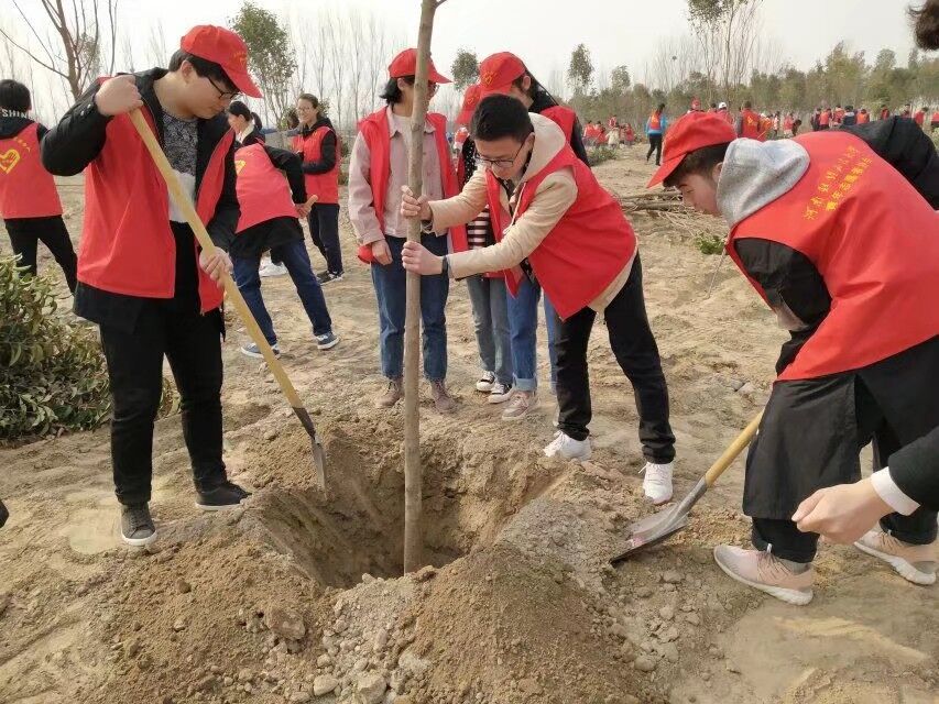 早晨9点,志愿者们共同前往黄河大堤并在相关人员的安排,领取植树工具。植树现场在志愿者们分工协作,严格按照植树技术要求积极投入到植树活动中。大家挥锹铲土、扶直苗木干劲十足,栽下了一株株新树苗,整个植树现场呈现一派热火朝天的景象。